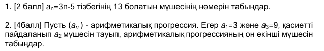 9 сынып Алгебра 2 тоқсан Бжб№1