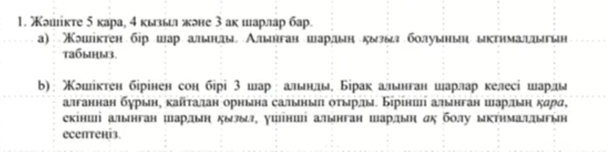 9 сынып, Алгебра / «Ықтималдықтар теориясының элементтері» БЖБ / 4-тоқсан