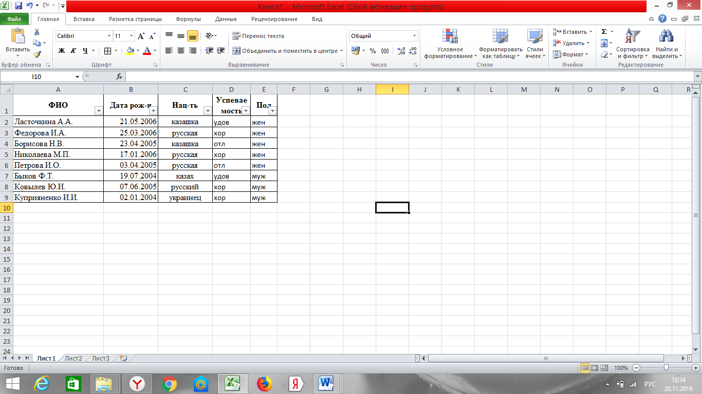 Разработайте и заполните табличную базу данных по следующему описанию: