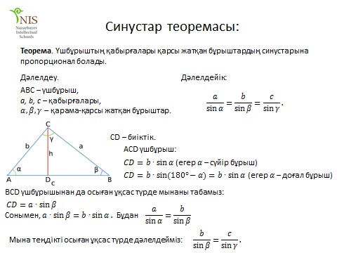 Сәлеметсіздерме! Бүгін, Синус және косинус теоремаларын үшбұрыштарды шешуде қолдану тақырыбын қарастырамыз Бүгінгі сабақта меңгеретініңіз:
