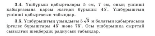 13,14,15.Үлкен бұрышының косинусын 4. Үшбұрыш қабырғалары 13,14,15.кіші бұрышының косинусын табыңдар ----0,5 5.