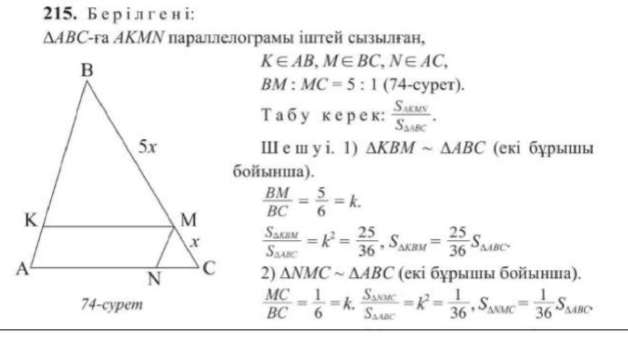Оқулықтан үшбұрыш ұқсастығына есеп шығарады.