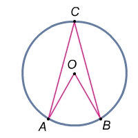 оған сәйкес центрлік бұрыштың г Төбесі шеңберде жататын, ал қабырғалары сол шеңберді қиып өтетін бұрыш шеңберге іштей сызылған бұрыш деп аталады. АВС бұрышы шеңберге іштей сызылған . Оның В төбесі шеңбер бойында жатыр, ал бұрыштың қабырғалары шеңберді А және С нүктелерінде қиып өтеді. А және С нүктелері шеңберді екі доғаға бөледі. В нүктесі жатпайтын доғаға сәйкес центрлік бұрыш іштей сызылған В бұрышына сәйкес центрлік бұрыш деп аталады. Сонымен шеңберге іштей сызылған АВС бұрышына сәйкес центрлік бұрыш АОС бұрышы болады. Теорема: Шеңберге іштей сызылған бұрыш өзіне сәйкес центрлік бұрыштың жартысына тең болады. |