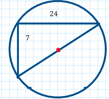 Егер тікбұрышты үшбұрыштың катеттерінің ұзындықтары 7 см және 24 см-ге тең болса, онда үшбұрышқа сырттай сызылған шеңбер радиусын табыңдар. |
