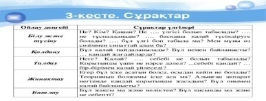 Оқылым Айтылым 1-топ: Мәтін мазмұны бойынша «Сұрақтар кестесі»
