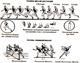 Қашықтықтырға жүгіру үшін сөреден шыға білудің үлкен манызы бар.Әдетте жүгірушілер жоғары сөрелік қалыпты пайдаланады.Бұл ретте сөре сызығына күшті деп есептеген аяқты қою керек «Дайындал» пәрмені бойынша аяқты бүгіп,кеудені ілгері еңкейтеді «Баста» деген пәрмен бойынша орташа жылдамдықпен жүгіреді. Қолмен кеуденің қалыпы,қозғалысы тепе-теңдікті сақтауға мүмкіндік береді. Дененің бұлшық еттерін қатты ұстауға болмайды 5-6 қадам жасағаннан кейін тыныс алған жөн (ауызбен) Шапшандық артқанда тыныс алу жиілігі артады. Демді қалыпқа келтіру жаттығулары. елу тамыр соғысы. «Қуып жет». Ойынның қатысушылары олардың арасында бірдей арақашықтық болатындай етіп (10-15 м) жүгіру жолына тұрады. Белгі бойынша барлық ойыншылар жүгіре бастайды. Әрбірінің міндеті – өзін қуып жетуге жол бермеу және ойыннан шығарып тастау үшін алдында жүгіріп бара жатқан оқушыға қол тигізуге тырысу. Ойын жолында ең төзімді үш оқушы қалған кезде, ойын аяқталады. |