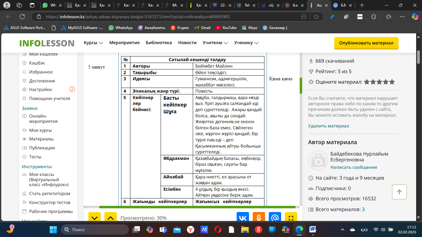 Бейнежазба сілтемесі: https://youtu.be/oeUGv3hpNz4?si=wg1DTpQH7qM3xM7u «Сатылай кешенді талдау» кестесі Кесте «Кейіпкер анкетасы» әдісі «Кейіпкермен сұхбат» әдісі |