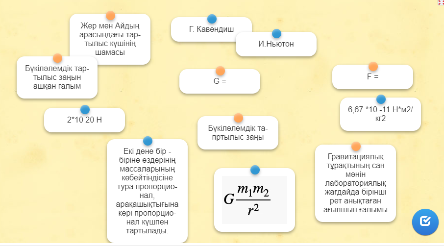 Топтар берілген тапсырманы Бүкіләлемдік тартылыс заңын тұжырымдай отырып орындайды