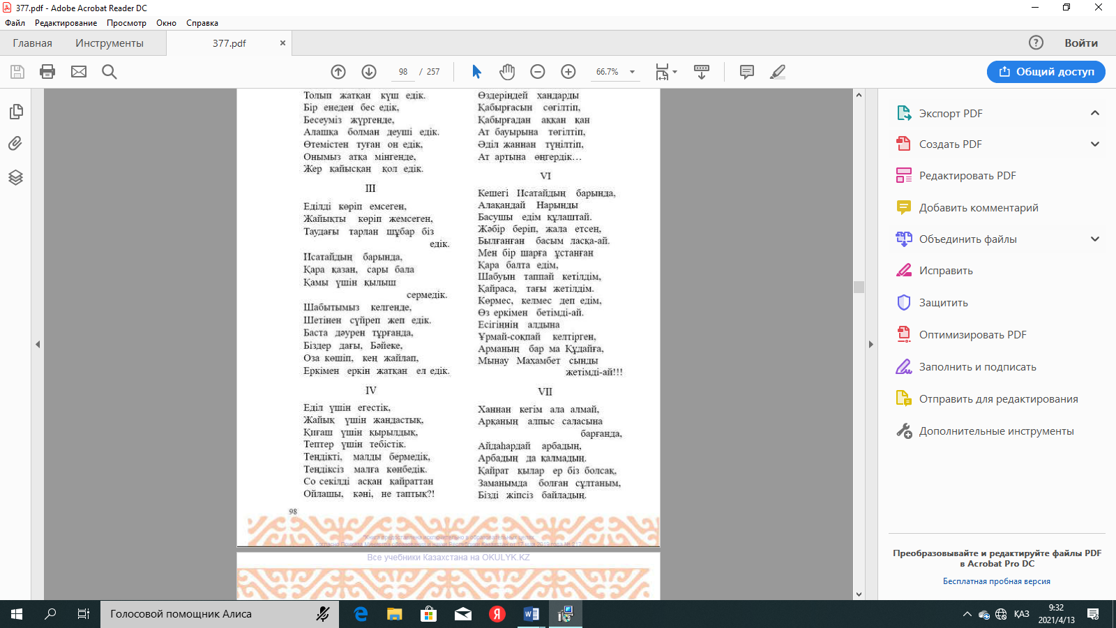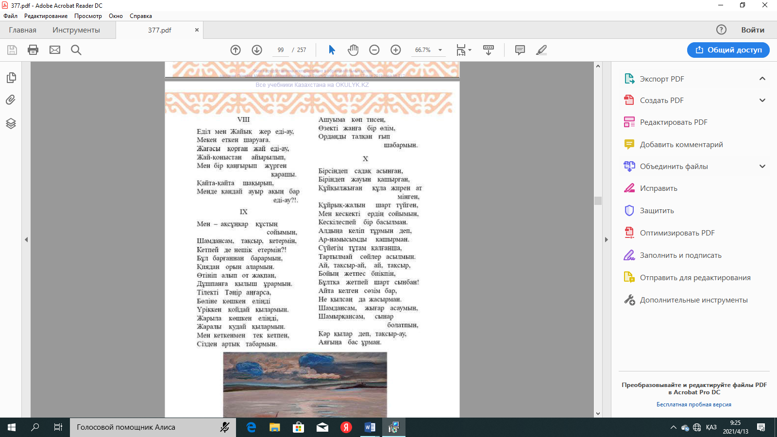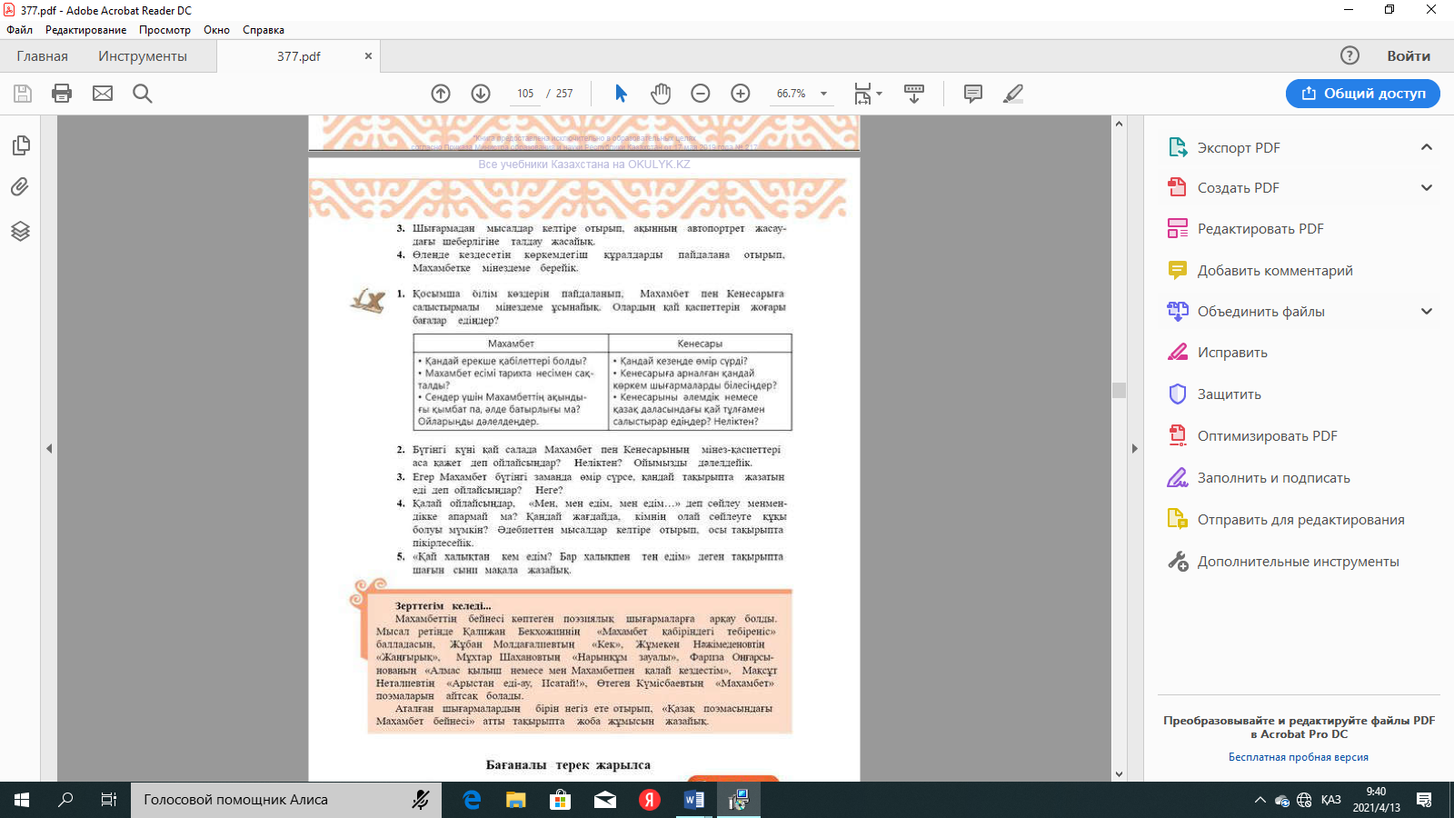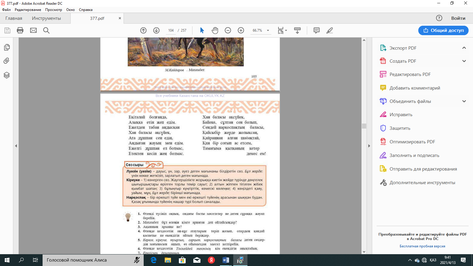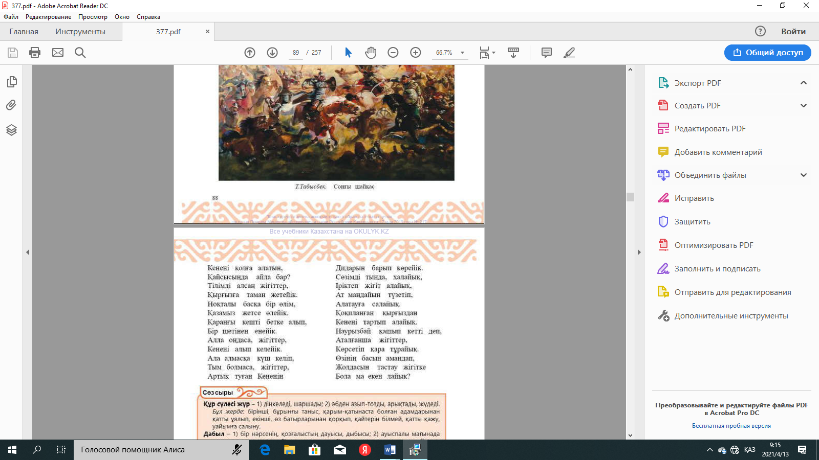 №2-тапсырма: Өлеңнің басын оқулықтан, түсінгендеріңді айтыңдар. |