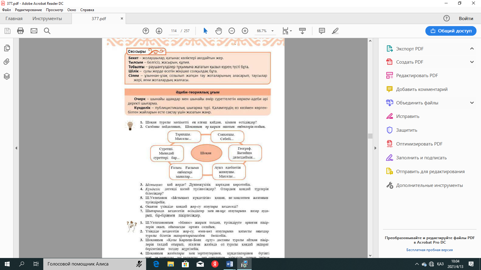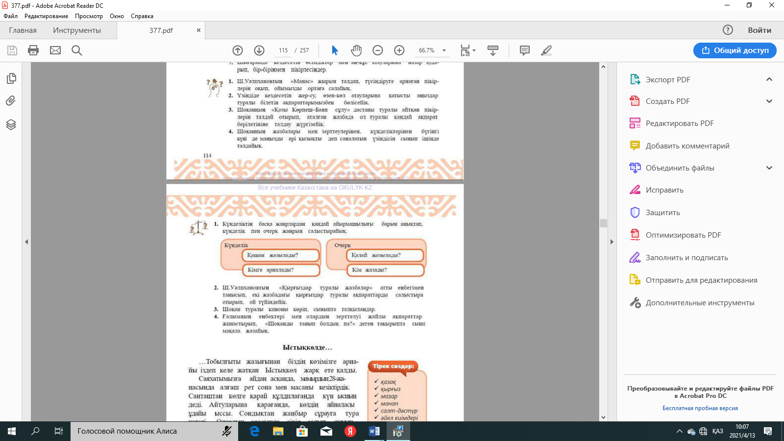 №2-тапсырма: Очеркті оқып, түсінгендеріңді айтыңдар. |