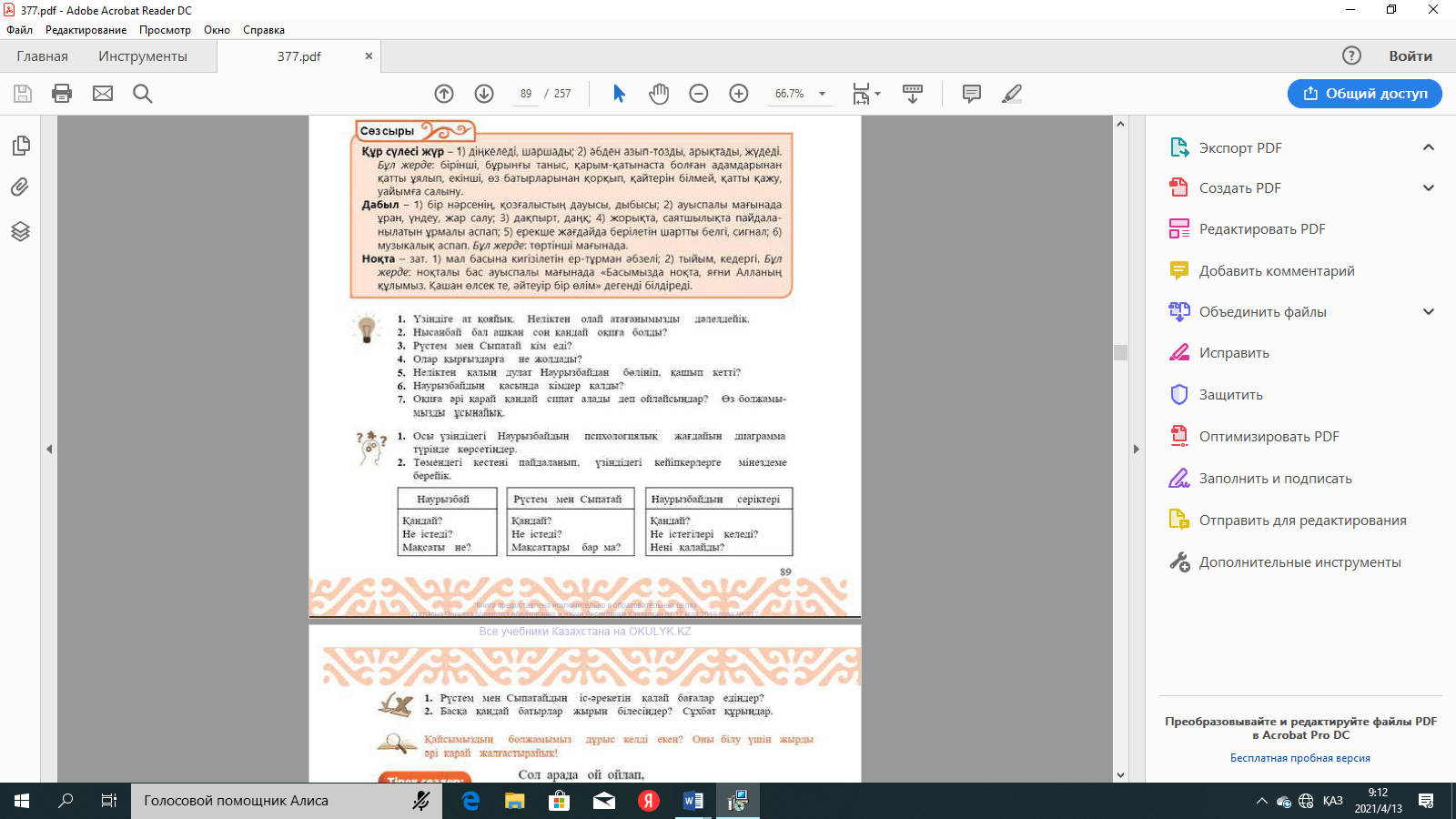 Сабақтың ортасы Мағынаны ашу. 26 мин. |