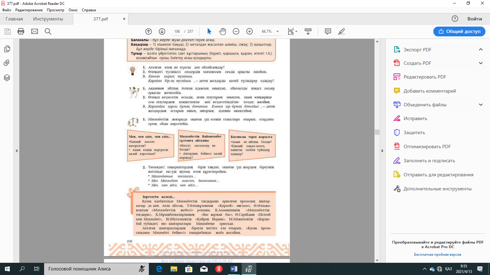 9.1.4.1 көркем шығармалардан алған үзінділерді шығармашылық жұмыстарда қолдану |