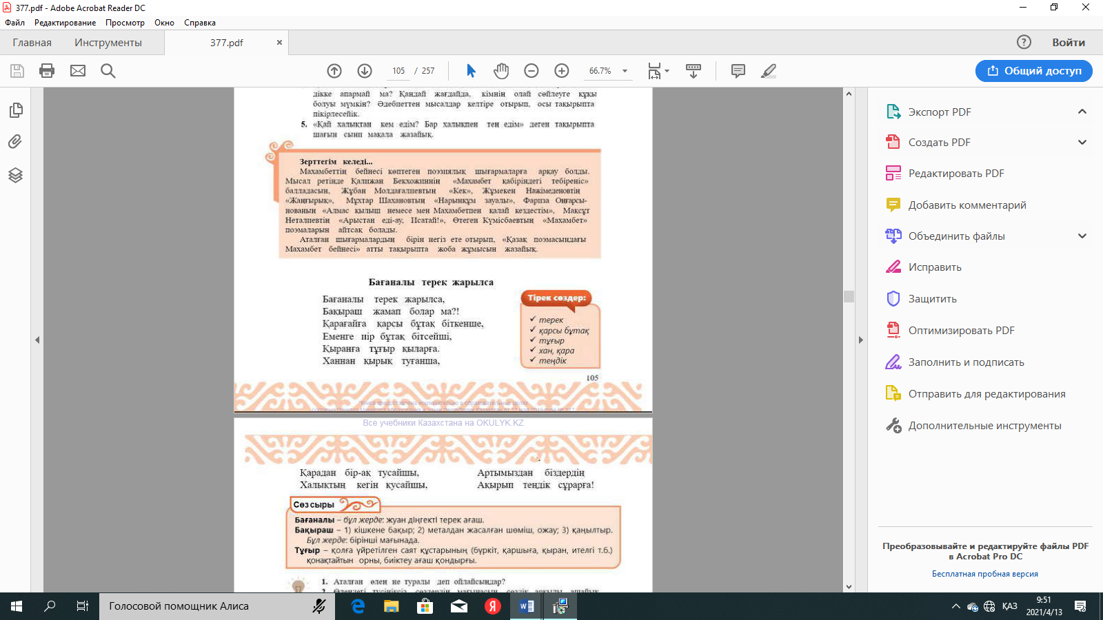 "Бағаналы терек" өлеңінің құндылығы |