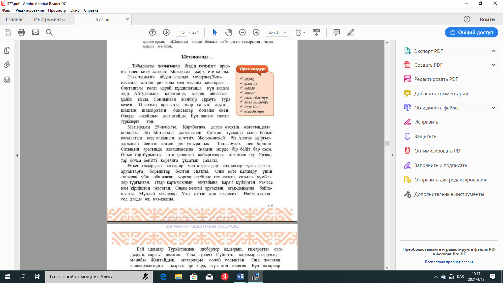№3-тапсырма: Очеркте кездесетін жер-су атарына қатысты қандай аңыздарды білесіңдер? |