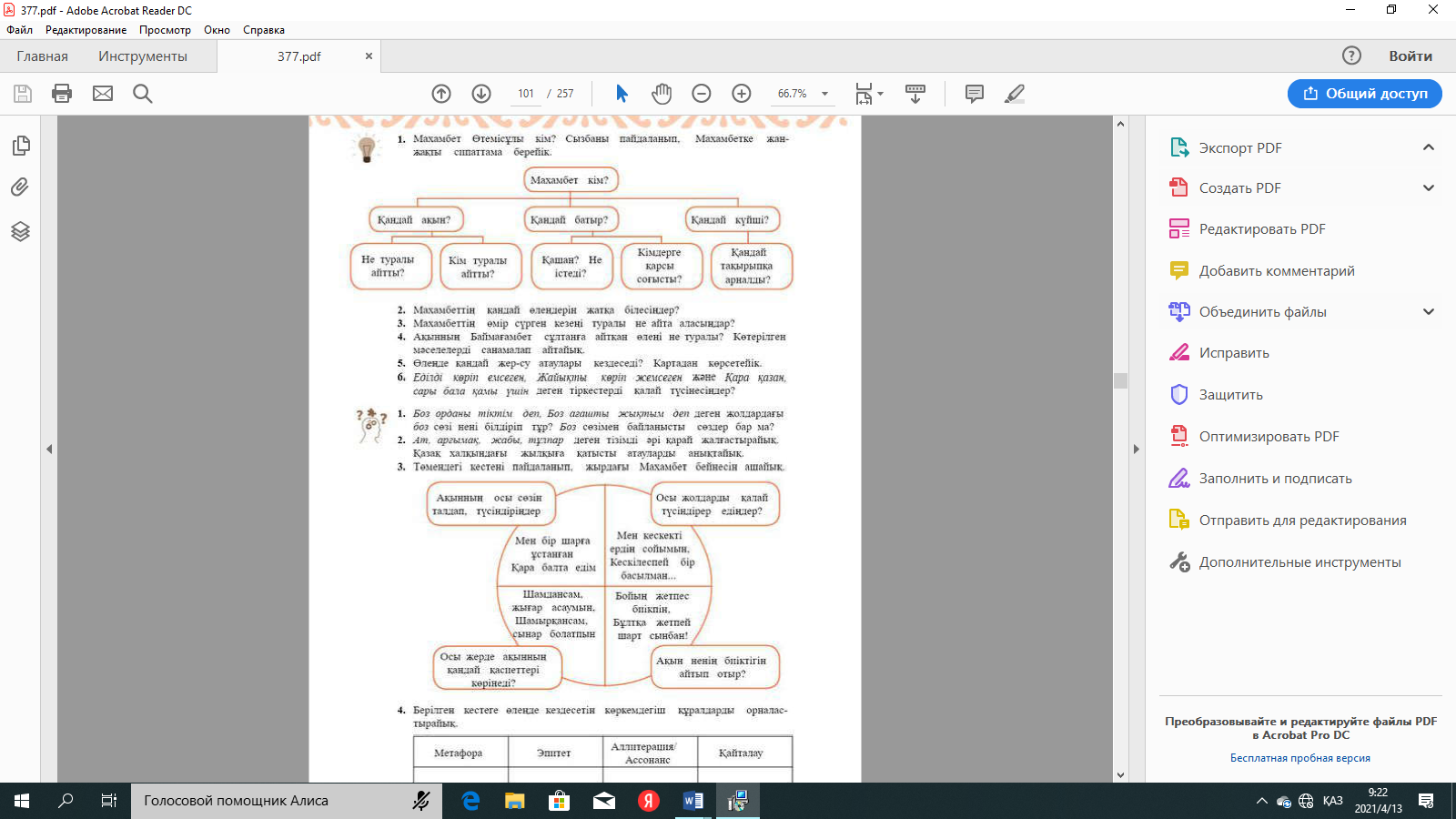 9.3.3.1 шығарманың идеясын ғаламдық тұрғыдан талдап, әдеби эссе жазуды үйренеді |