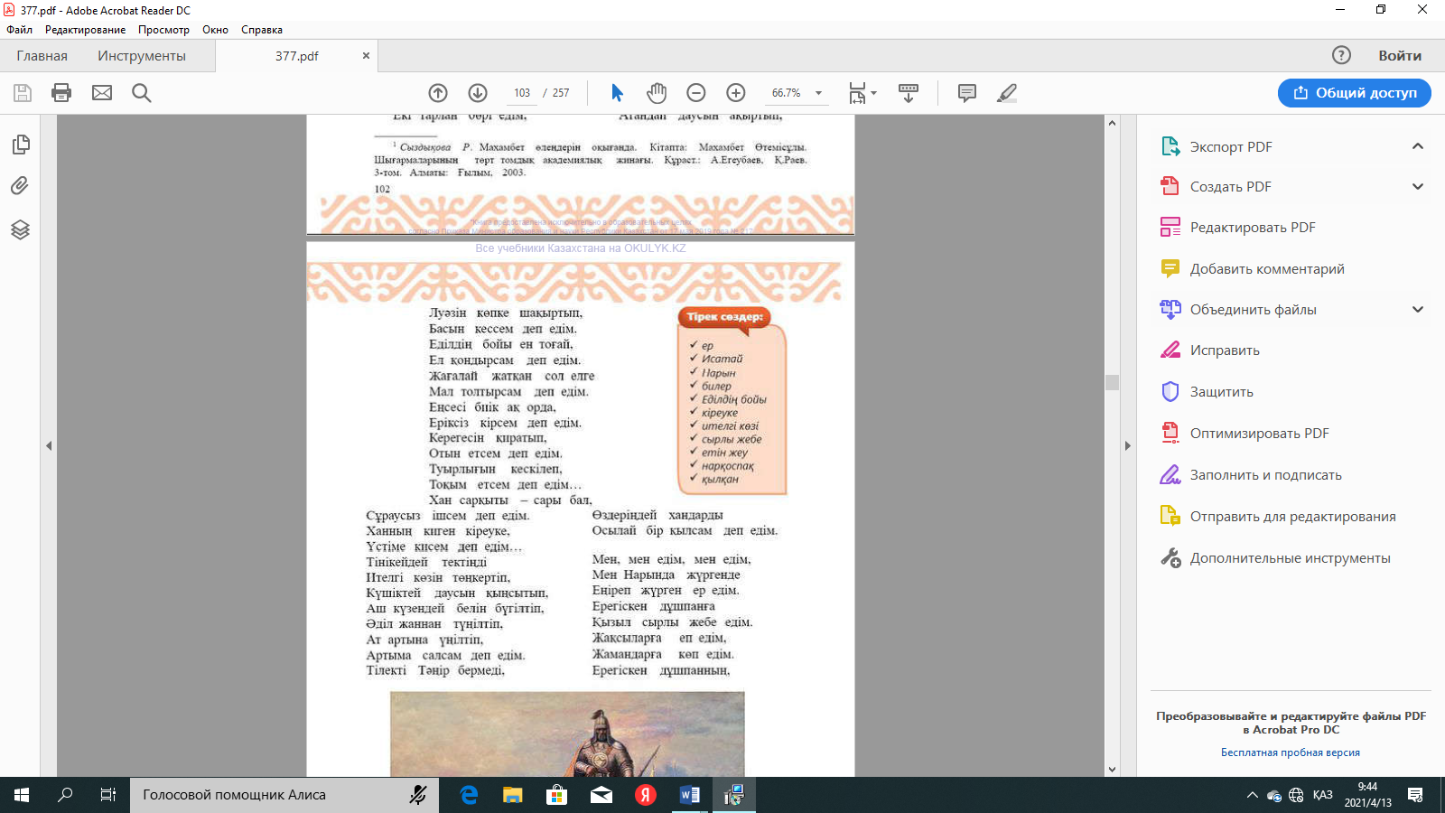 №1-тапсырма: Өлеңдегі көнерген сөздерді теріп жазыңдар. |