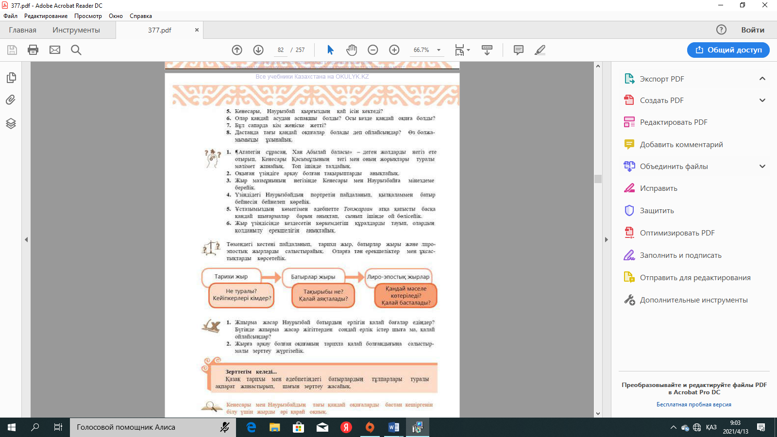 9.3.2.1 шығармадағы ұрпақтар сабақтастығы көрінісін заманауи тұрғыда салыстырып, жаңашылдығына баға беру; |