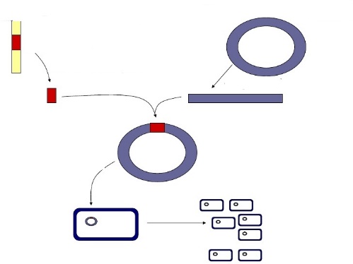 Бактериялардың қос сақиналы ДНҚ түріндегі плазмидасы фермент арқылы кесіліп, оған жаңа ген енгізуге дайындалады.