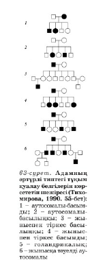 Белгінің ұрпақтар арасында берілу заңдылықтары (автосомды-доминантты, автосомды-рецессивті, жыныспен тіркескен).