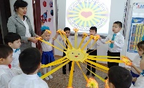 Сабаққа дайындық жасап, жақсы тілектер тілейді. Үй тапсырмасын тексертеді Суретпен жұмыс жасайды Өздері туралы айтады Балалар ойыны туралы айтады Жеке жұмыс жасайды Жаттығу жасайды Өз ойларын айтады Қосымша жұмыс жасайды Күн шуақтарына өз ойларын жазып жапсырады Үй тапсырмасын алады Кері байланыс береді |
