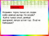 Сабақ тың басы 5 минут Өткенді пысықтау 5 минут Сабақ тың ортасы 20 минут Сергіту сәті 2 минут Сабақты қорыту 6минут Қосымша тапсырма 2минут Кері байланыс 5 минут |