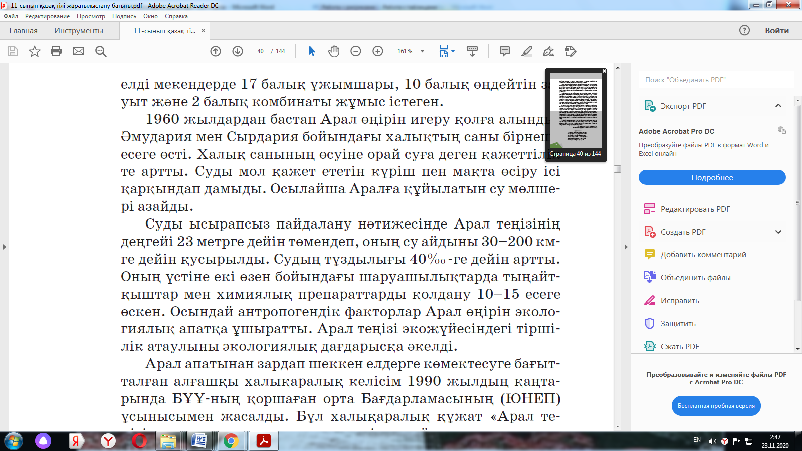 Арал теңізі туралы бейнематериал тыңдайды