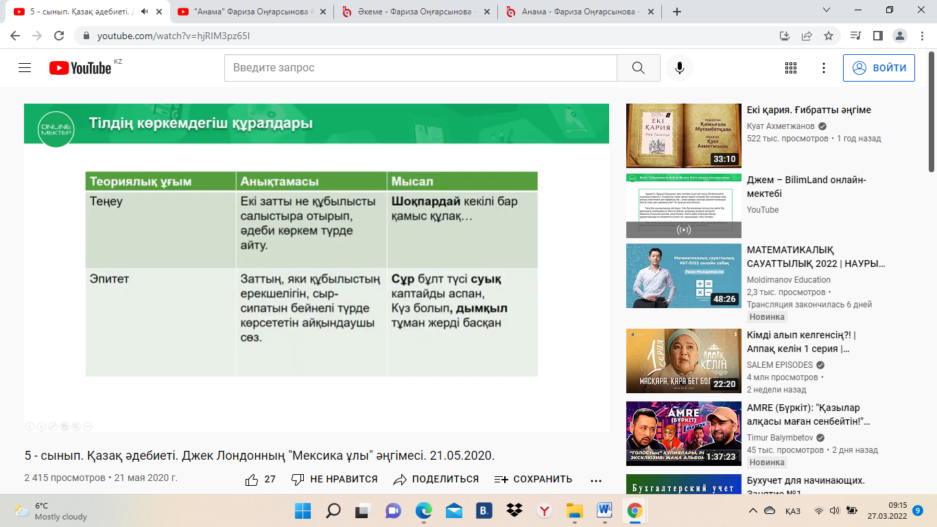 5.2.3.1 шығармадағы тілдік бейнелеу, суреттеу құралдарының (теңеу, эпитет, ауыспалы мағынадағы сөздер, қайталау, өлең құрылысы) мағынасын анықтау;
