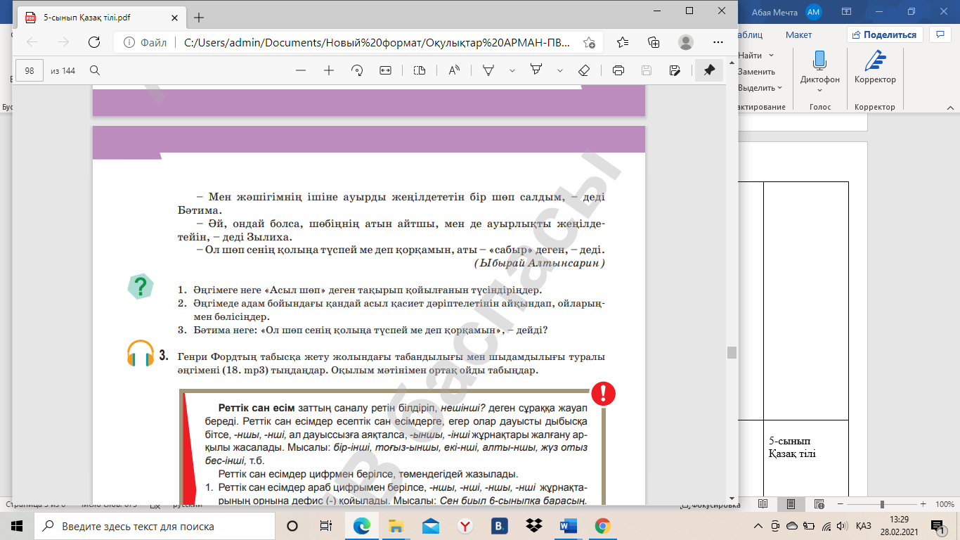 5-тапсырма. Абайдың 19-қарасөзін түсініп оқып, ондағы негізгі ойды реттік сан есімдерді пайдалана отырып жазыңдар.
