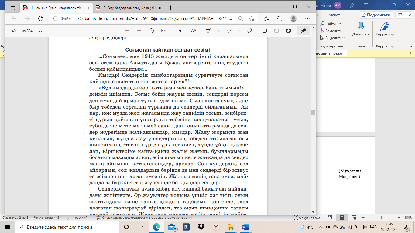 11-сынып қазақ тілі (Әзілхан Нұршайықовтың «Махаббат, қызық мол жылдар» романынан) («Бабалар сөзі» жинағынан)