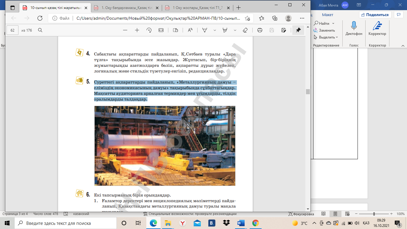 Бөлім тақырыбы: Индустрияландыру: ұлттық өндіріс. Сөз мәдениеті. |