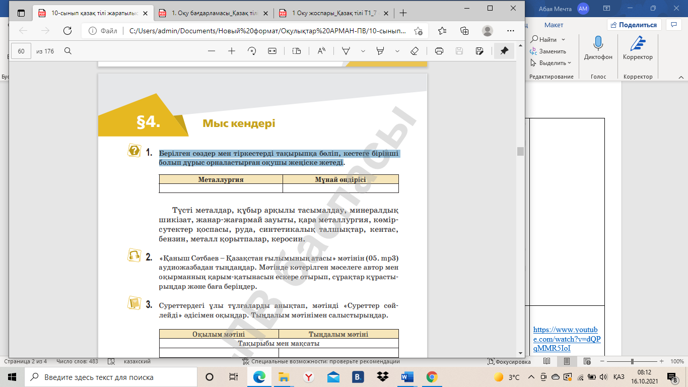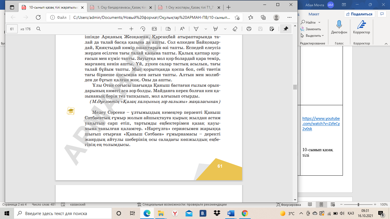 https://www.youtube.com/watch?v=ZzfeCy2v0sk 10-сынып қазақ тілі (М.Әуезовтің «Қазақ халқының зор ғалымы» мақаласынан) |
