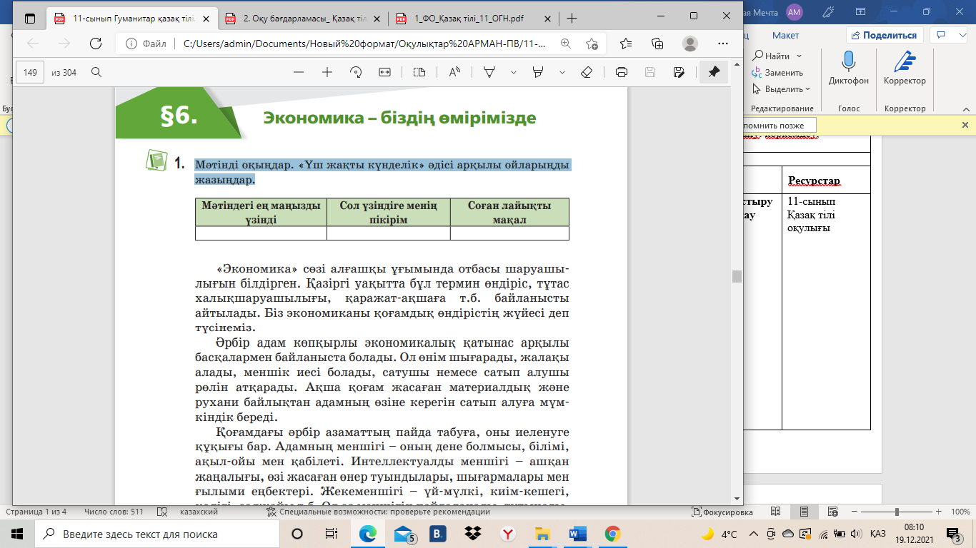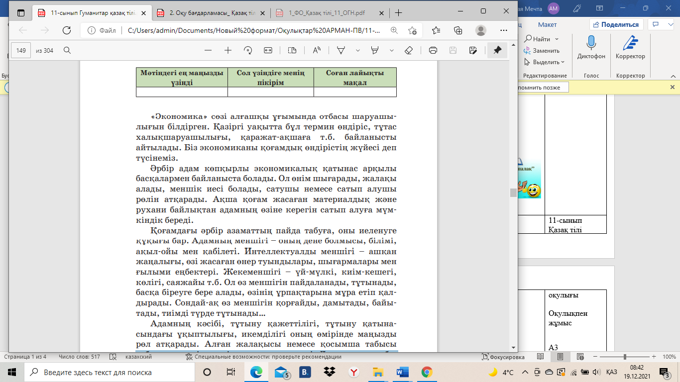11-сынып Қазақ тілі Оқулығы («Жалпы экономика» оқулығынан) |