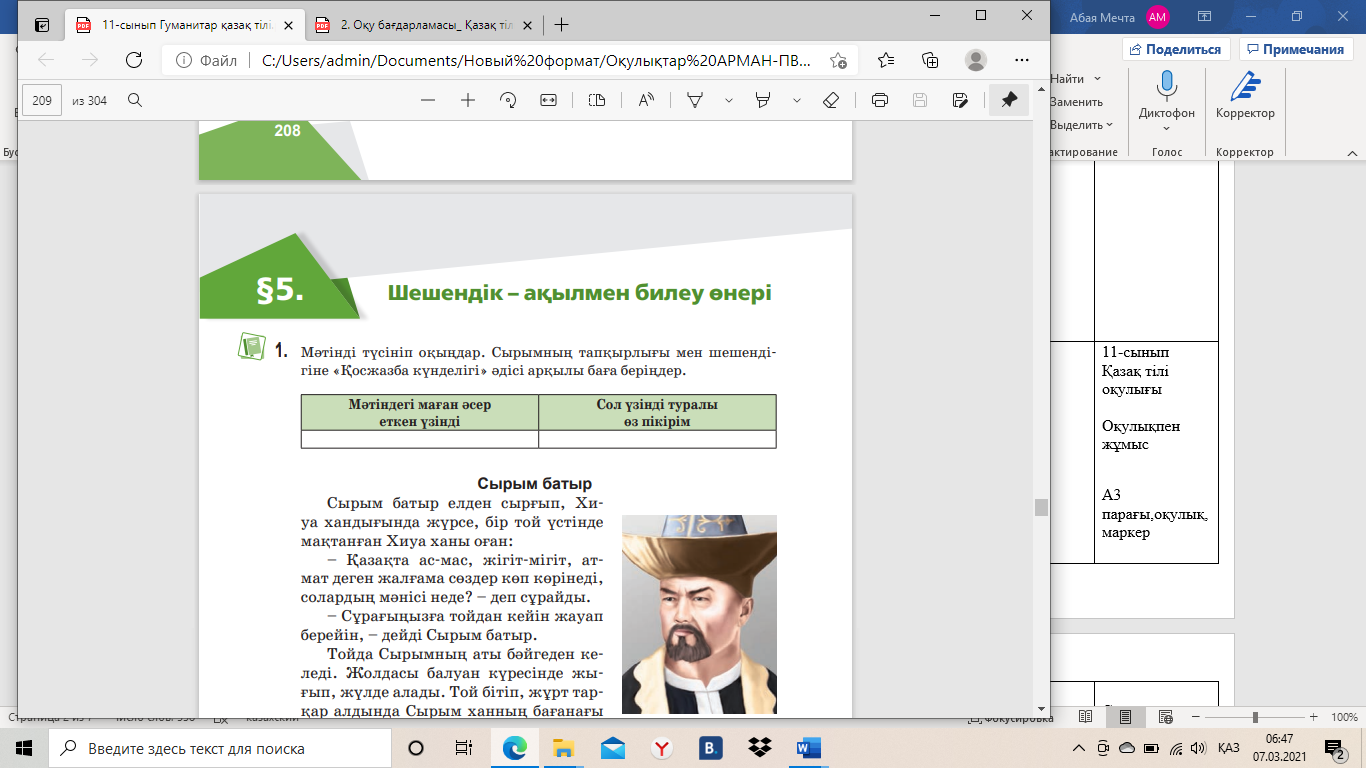 11-сынып Қазақ тілі оқулығы Оқулықпен жұмыс А3 парағы,оқулық, маркер |