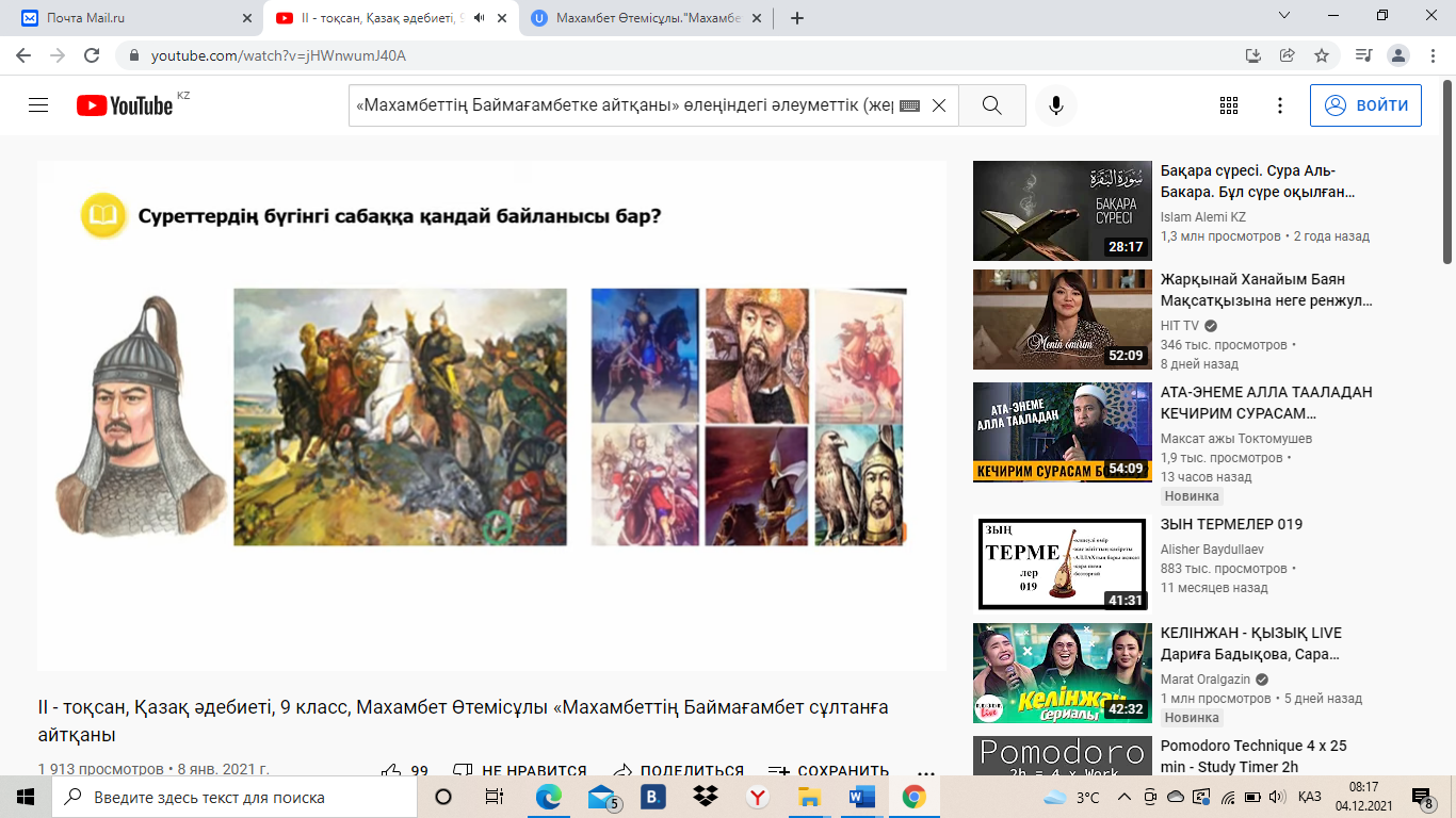 І. Ұйымдастыру кезеңі. Оқушылармен сәлемдесіп, зейінін сабаққа аудару. Қызығушылықты ояту. «6 НЕЛІКТЕН» әдісі. Әр топтан оқушы ортаға шығады, жабулы тұрған сұрақтардың біреуін суырып, сұраққа жауап береді. 1. Неліктен Махамбет өлеңін Баймағамбет сұлтанға арнады? 2. Неліктен Махамбет«онымыз атқа мінгенде, жер қайысқан қол едік»деді? 3. Неліктен Махамбет Исатайды жоқтап сөйлейді? 4. Неліктен Махамбет ханның Ақ ордасын бұзуды ойлады ? 5. Неліктен Махамбет өзін «шамдансам жығар асаумын» деп сипаттайды? 6. Неліктен Махамбет Баймағамбетті ата дұшпан деп атайды? Суреттердің бүгінгі сабаққа қандай байланысы бар? (оқушылар жауабы тыңдалады).