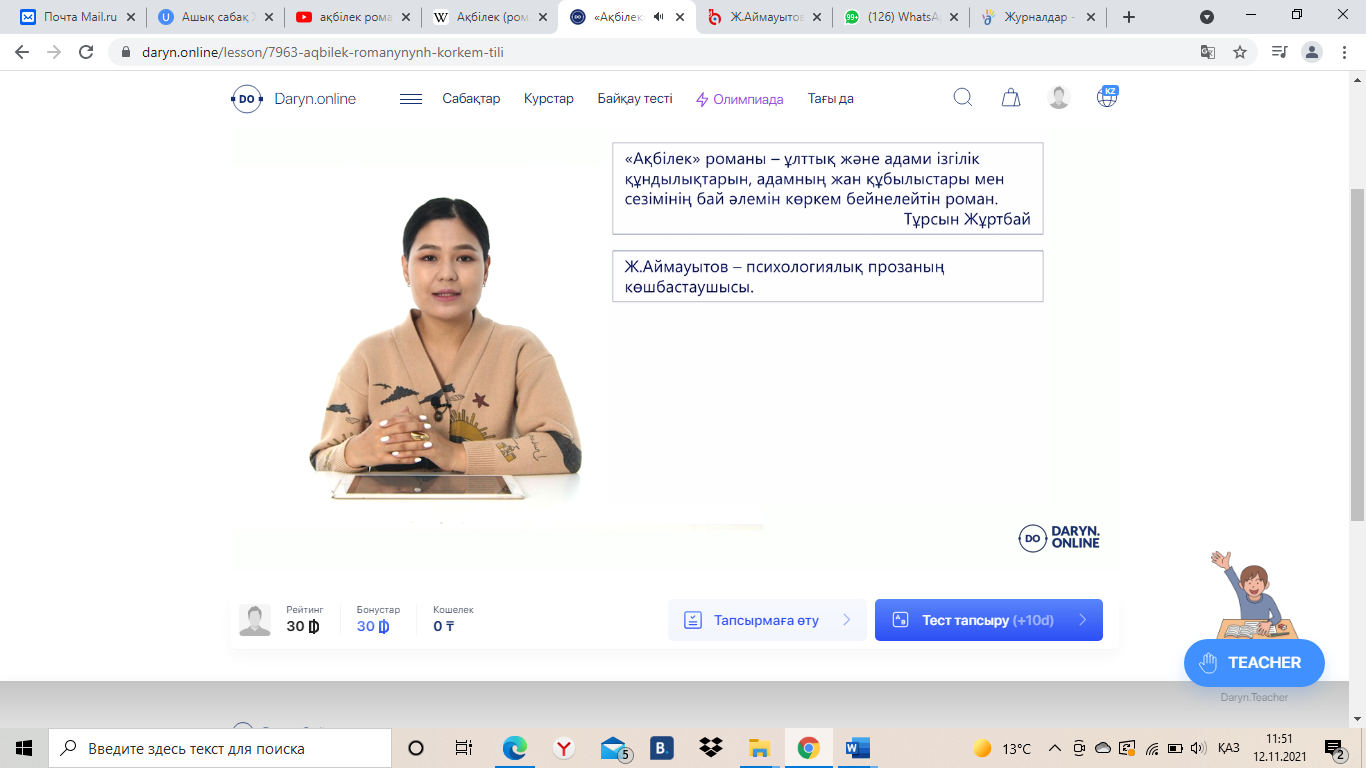 № 9 Жүсіпбек Аймауытұлы «Ақбілек» романының көркемдік сипаты..docx