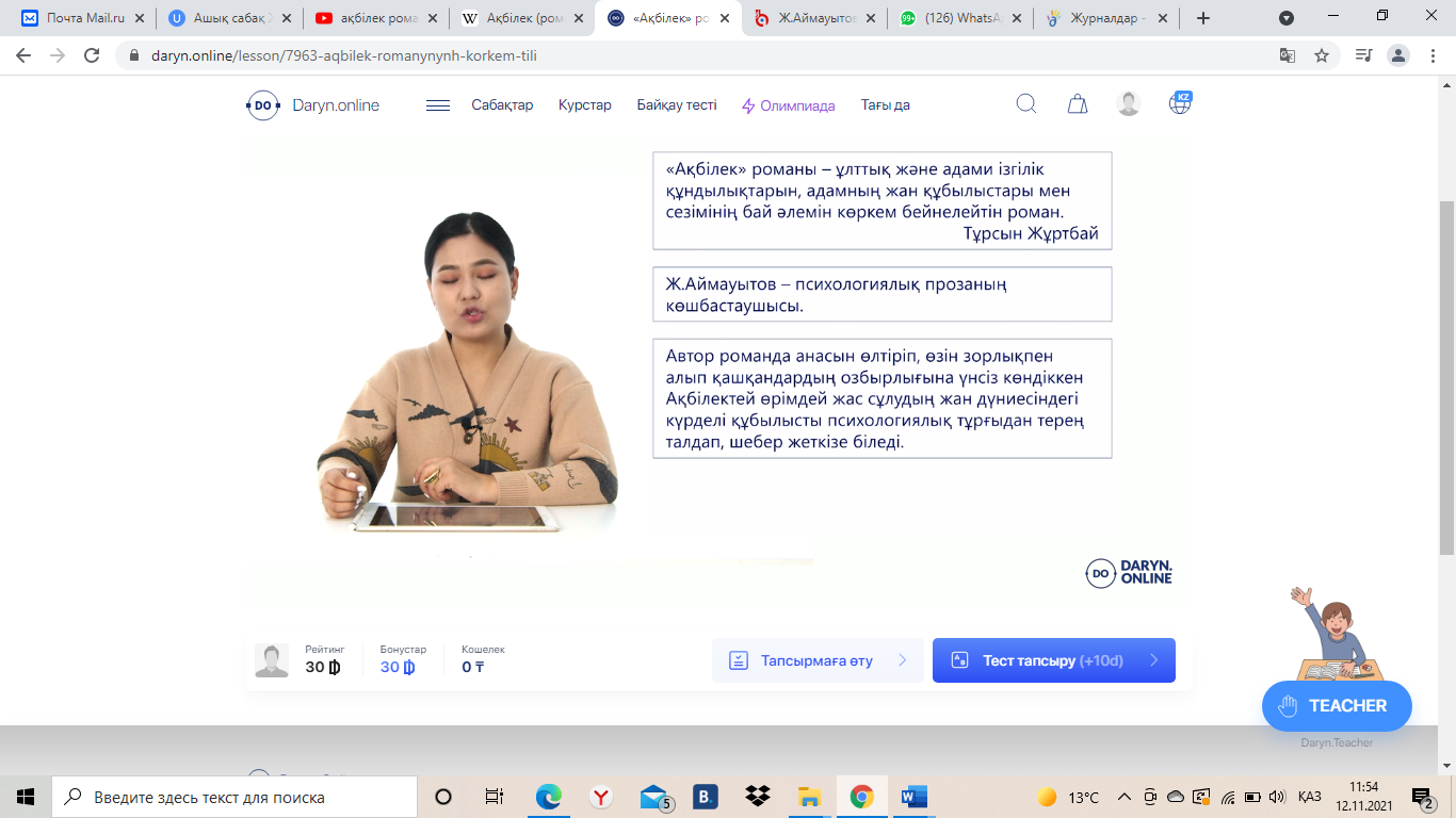 Ж. Аймауытұлы «Ақбілек» романы |