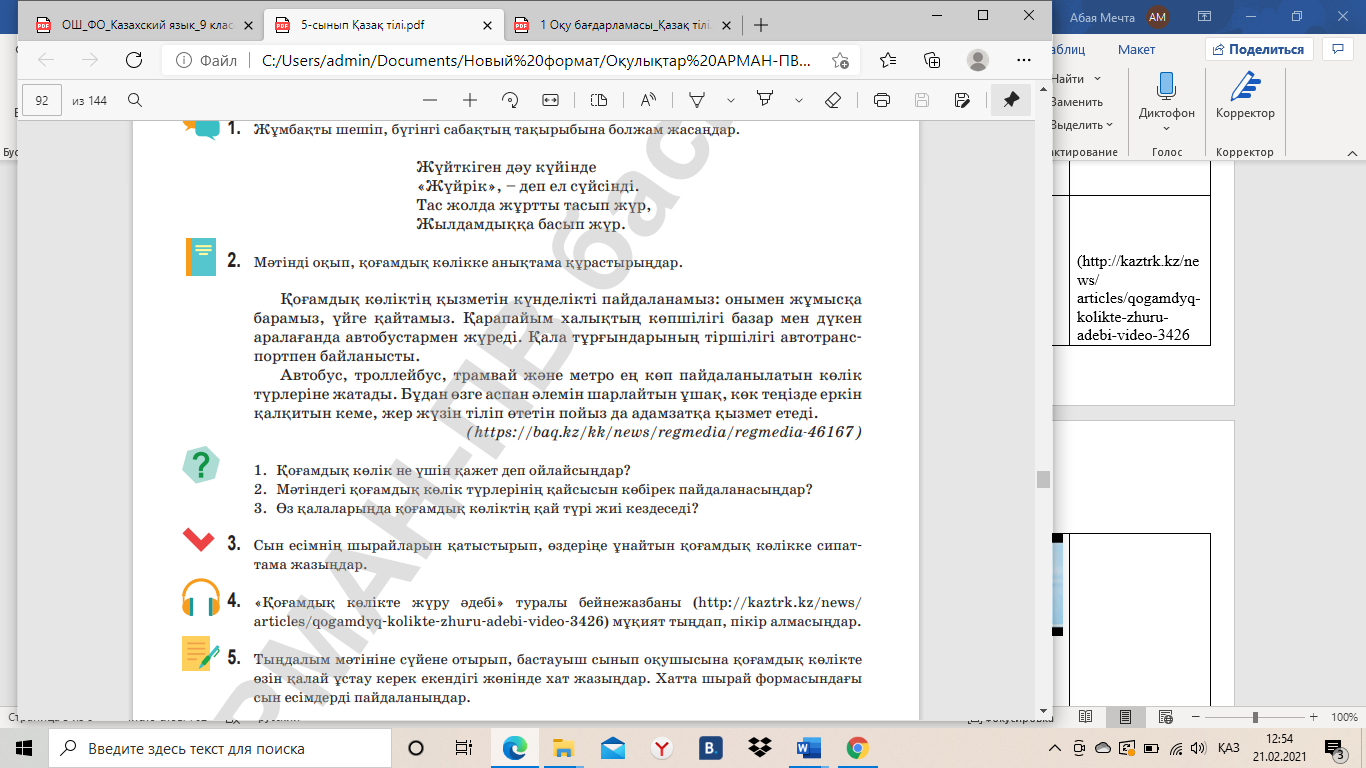 5-сынып «Қазақ тілі» оқулығы https://www.zharar.com/kz/zhumbak/1375-equipment.html (http://kaztrk.kz/news/ articles/qogamdyq-kolikte-zhuru-adebi-video-3426) |