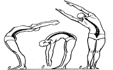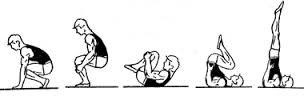алға еңкейіп, арқаны бүкірейтіп ұстап, алға айналып кетуі