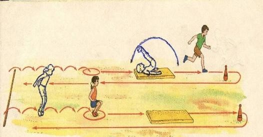 жұптармен жүгіру - ұзындыққа орыннан секіру - көздеп лақтыру