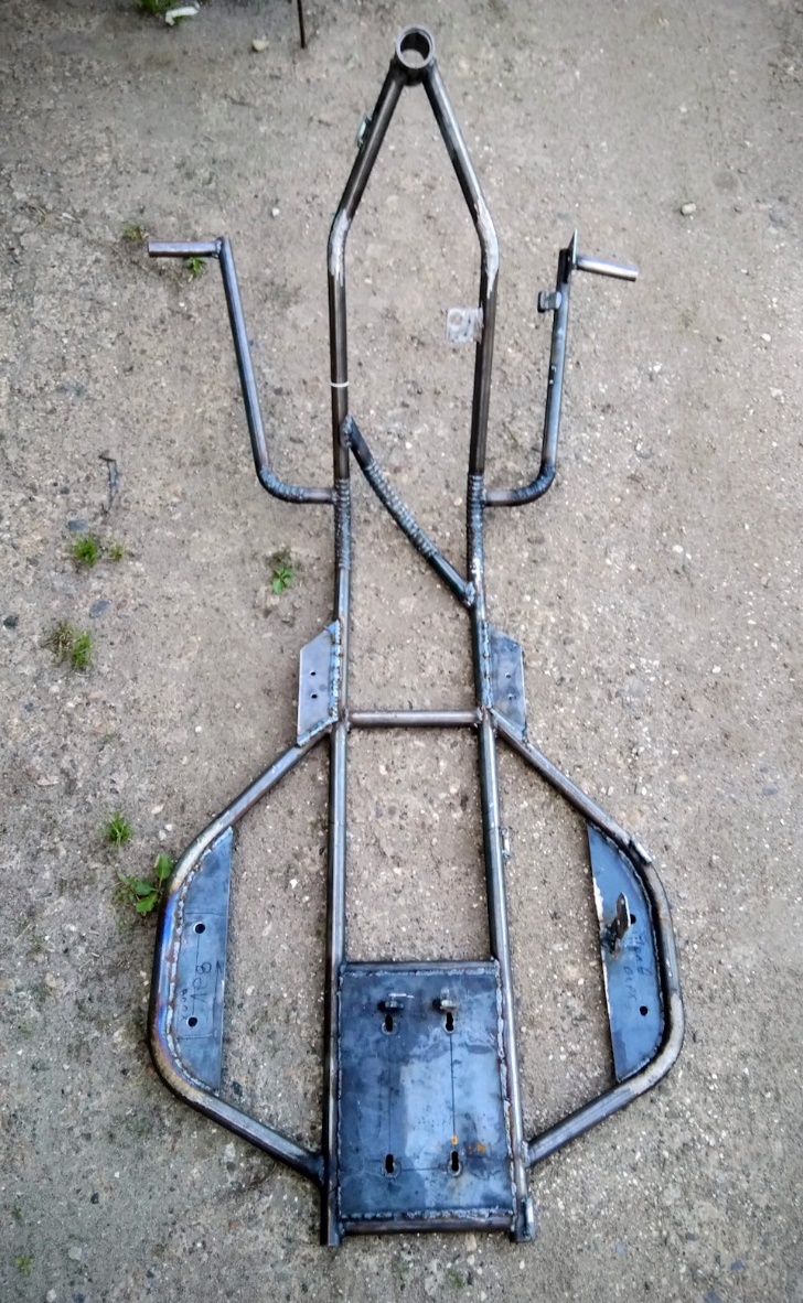 Мен седла, ось мойынтіректері мен қозғалтқышты бекітуге арналған 2мм және 3мм Болат тақтайшаларды қостым. Қаттылық үшін жақтаудың бүктелген жерінде диагональды штанганы қостым. Нәтиже келесідей болды: