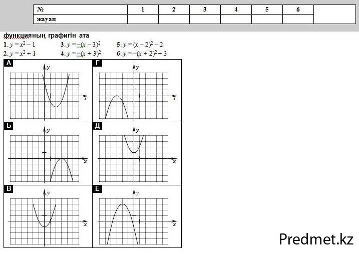 бөлігі: Кеубіреулері: квадраттық функция графиктерін түрлендіріп салады. |