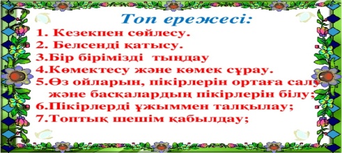 Топтық, ұжымдық,жеке тапсырмалар орындау барысында ынтымақтастық орнату. |