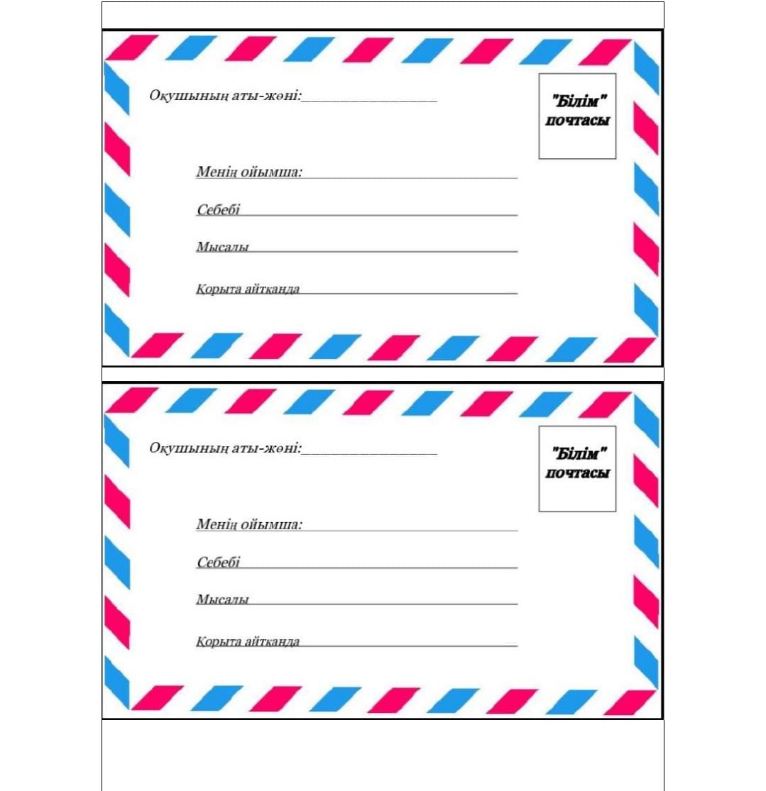 Рефлексия: «Білім поштасы» әдісі бойынша оқушылар сабақтан алған әсерлерімен бөліседі. |