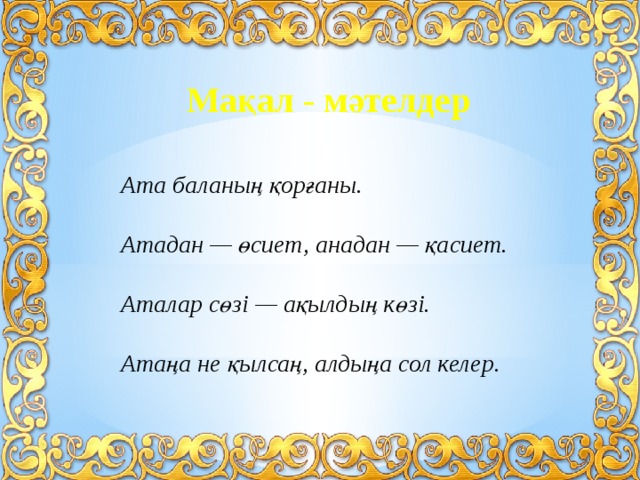 №22 сабақ. Ата ақылы А.Байтұрсынұлы «Ата насихаты» |
