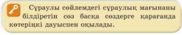 2.3.7.1* сөйлем түрлерінің айтылу мақсатына сәйкес тыныс белгілерін (нүкте, үтір, сұрақ белгісі, леп белгісі) қолдану 2.1.3.1 күнделікті өмірде кездесетін жағдаяттарға байланысты сөйлеу мәдениетін сақтап, диалогке қатысу |