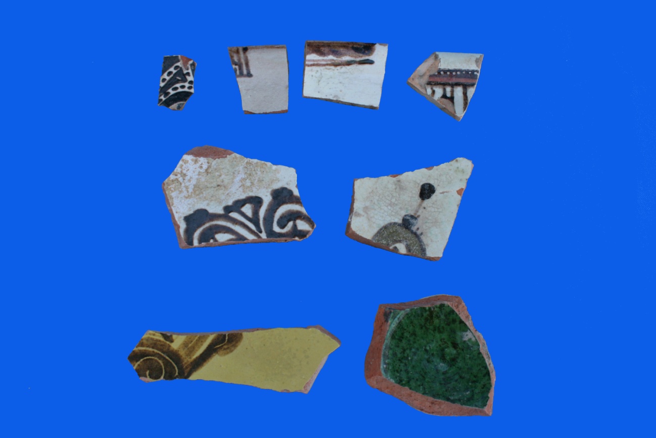 Шахристанда 2015 жылы жүргізілген 9-қазбадан ашылған бөлмелерден табылған археологиялық заттардың қатарында бояулы, бояусыз қыш ыдыстар, шыны ыдыстардың ұсақ сынықтары, металлдан жасалған заттардың қатты тотыққан қалдықтары табылды (сурет 16).