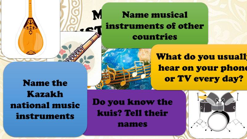 1-guitar 2-flute 3-violin 4-kobyz 5-dombyra 6-drnm 7-dombra |