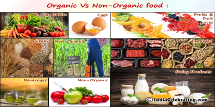 Organic and non-organic food. |