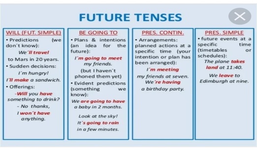 Self assessment Descriptor: - look at the underlined word/phrase - identify the type of verb Total: 2 point Descriptor: - put the verbs in brackets into the correct future tense. - complete the task Total: 2 point Descriptor: - complete the sentences with a word - complete the task Total: 2 point -Make CCQ questions Yes / No |