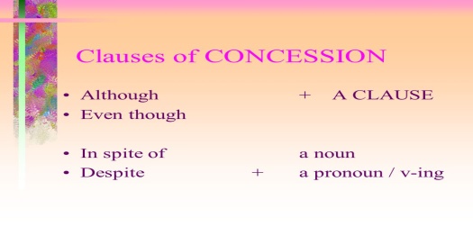 . The aim: To develop pupils speaking skills and create friendly atmosphere Efficiency: By wishing each other they feel better and feel the support of others Students of the class are listed. Students' attention is drawn to the lesson. • Learners remember previous lesson vocabulary Determines the topic and purpose of the lesson Students say different words from the picture • Pupils find examples of clauses of concession and multi-word verbs in the text ANSWERS clauses of concession: But, despite the fact that, Although multi-word verbs: came up with, carry out |